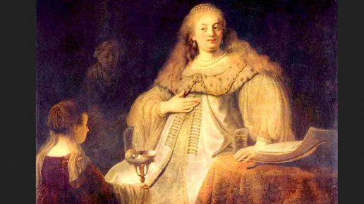 Я пишу о людях, чей образ отражен в искусстве. Те, кто интересуется искусством XVII-XVIII веков, не могут не обратить внимание на то, что образ некоей Софонисбы, принимающей чашу с ядом, встречается в этот период у многих художников. Особенно он был популярен во времена Рембрандта, и это поветрие не обошло и его. В картине самого ван Рейна мы видим пышноволосую даму довольно обширного охвата, похоже, беременную, которой коленопреклоненный юный слуга протягивает красивый бокал. А в нем-то яд! Эта...