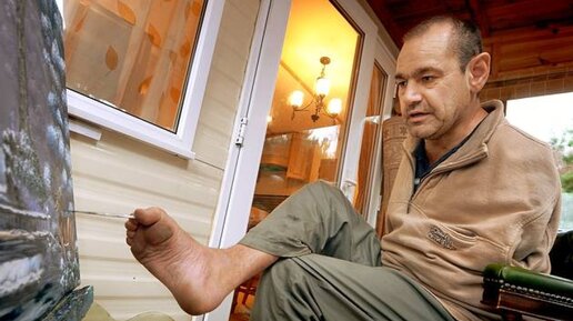 Художник без рук рисует ногами