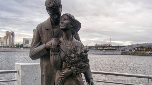 В каждом городе есть памятник влюблённым, я уверена. Ну, если нет, то в будущем обязательно появится. Расскажу о тех скульптурах, что встретились нам во время поездок и прогулок по уральским городам. Итак, новенькая, свеженькая композиция на набережной в Челябинске. Он и она. В руках у девушки букет сирени. И вот оно, пяилепестковое счастье, на одной из веточек видно невооружённым глазом. Влюблённые счастливы вместе, и это прекрасно. Скульптура установлена в год семьи, создана по инициативе Международного Института дизайна и сервиса и передана в дар городу...