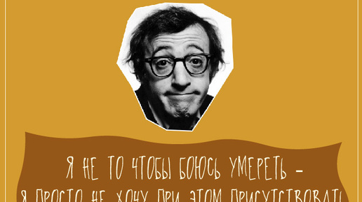 УгарАмба1 год назадПодписатьсяЯ не то чтобы боюсь умереть — Вуди АлленЯ не то чтобы боюсь умереть — я просто не хочу при этом присутствовать. Вуди Аллен Источник