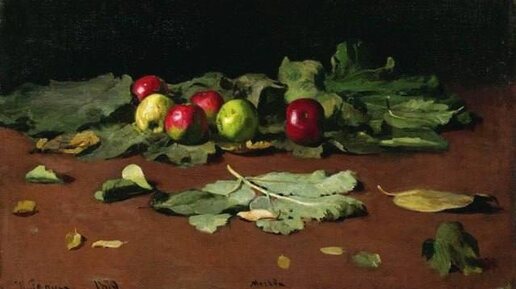 "Яблоки и листья", 1879 1879 год был периодом творческого подъёма художника. Уже в начале 1878 года Репин вместе с семьей переехал в Москву. Он тут же вступил в Товарищество передвижников и представил на выставке чугуевские портреты. Он много и плодотворно работал, писал этюды, портреты, с удовольствием выставлялся. Все мы знаем Репина как мастера больших полотен на исторические...