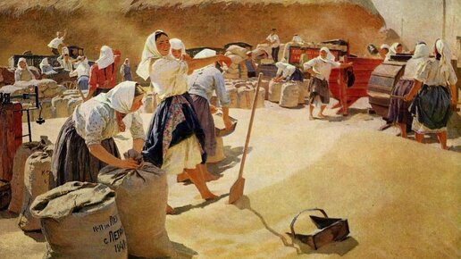 В своей работе молодая художница использовала наброски, сделанные летом 1948 года в колхозе имени В.И. Ленина Чемеровецкого района Каменец-Подольской области. Этот колхоз в селе Летава считался одним из наиболее благополучных хозяйств Советской Украины...