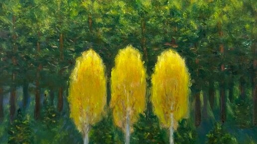 Оргалит, масло, 49 × 38 см. Есть картины, которые не столько рассказывают сюжет, сколько сразу задают настроение. Здесь все построено на ощущении света: солнце не просто поднимается над горизонтом, а словно заполняет собой пространство, проходит лучами через небо и ложится на лес внизу. Благодаря этому картина воспринимается очень открыто, тепло и по-хорошему искренне. По характеру это лирический, декоративно-образный пейзаж. Художник не стремится к...