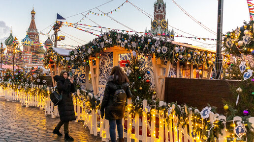В Москве на Красной площади открылся каток и новогодняя ярмарка. Предлагаю прогуляться и посмотреть, что и почем продают на главной площади страны. Здесь кипит жизнь. Установка катка с искусственным льдом стала уже традицией. А рядом множество палаток и ларьков со всевозможной всячиной. Паровозик с каштанами. Порция из 10 жареных каштанов обойдется в 350 рублей. Кукуруза и яблоки в карамели стоят чуть дешевле — по 250. Помимо еды, можно купить сувениры и утеплиться. Идем дальше. Ларьки оформлены в едином стиле...