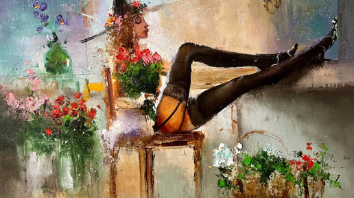 Дама с собачкой В вечерних огнях фонарей она идет со своим мопсом и думает о любви. А идет она по Зеленограду, где живет художник Игорь Медведев. Восьмиклассница Любимый сюжет художника - восьмиклассница перед школой выгуливает собаку. А в школу она опоздает - кошеп с собакой подерутся...
