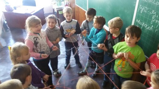 Игры на родительских собраниях необходимы. Сидеть за партами и смотреть в затылок сидящего, это легко, а вот стоять в кругу и еще говорить, когда на тебя все смотрят, могут не все взрослые. Умению высказать свое мнение надо учить с детства.  Игра Паутинка. Все встают в круг. Учитель берет в руки клубок ниток, представляется и просит высказаться родителей, какие волнения, переживания они испытывают перед вступлением в 1 класс. Учитель, держа кончик нитки в руке, бросает клубок любому, стоящему напротив...