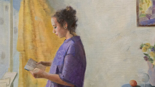 На примере картин из галереи Krittika мы посмотрим как можно применить новейшие технологии , такие как искусственный интеллект в искусстве. Что это , шутки радя или инструмент для работы? Возьмем любую картину из галерии Krittika.ru и пропустим ее через искусственный интеллект. Задачу мы поставили одну, сложную , интересную- дорисовать сюжет картины , со всех сторон холста. Первая картина художницы из Новосибирска Кальгиной Таисии "Перед экзаменом". На картине изображена девушка, читающая перед окном, скорее в квартире...