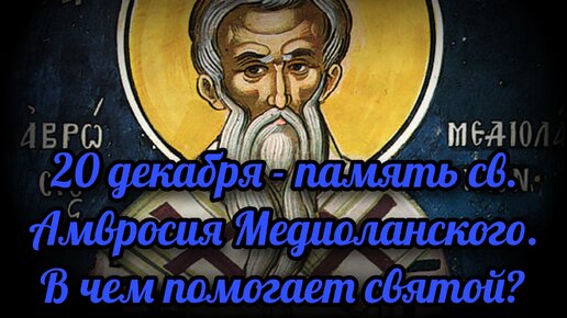 20 декабря Церковь празднует память святителя Амвросия Медиоланского, которого почитают и православные христиане, и католики во всем мире. Что это за святой и о чем ему принято молиться? Святитель Амвросий, епископ Медиоланский, родился в 340 году. Юноша получил блестящее юридическое образование, а 7 декабря 374 года был рукоположен в сан епископа Медиоланского. Став епископом, Амвросий раздал все свое имущество, деньги и имение на украшение храмов, помощь сиротам и нищим, а сам обратился к строгой подвижнической жизни...