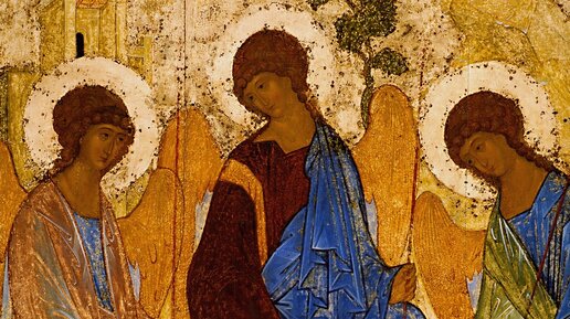 Икона скромно провисела 5 веков в Троицком соборе Троице-Сергиевой лавры, ничем не привлекая внимание мирян: не мироточила, не исцеляла, не чудотворила. Икона написана по ветхозаветному сюжету «Гостеприимство Авраама». Согласно оригиналу, праотец Авраам встретил у дубравы Мамре трёх таинственных странников, которых в дальнейшем назовут ангелами. Они рассказали Аврааму, что через год у того родится сын, от которого пойдёт народ иудейский. Затем двое ангелов отправились карать жителей Содома, а третий ангел остался с Авраамом...