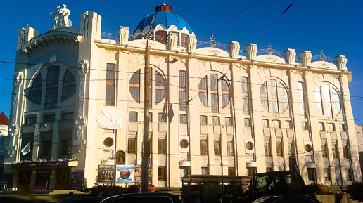 Современное здание филармонии построено на месте бывшего цирка-театра «Олимп», который был открыт в 1907 году по проекту самарского архитектора Платона Васильевича Шаманского. В «Олимпе» был свой постоянный концертный оркестр, работал буфет.