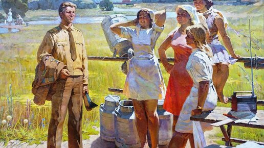 Сегодня вновь будет тема живописи. Возьмем советский период, сценки из жизни в советские годы на картинах художников. Думаю, в перспективе будет и наше время и 90-е. 1. Художник Иван Бабенко, картина "В родную бригаду", 1970 год. 2. Художник Е. Лобанов, картина "Строят дорогу". 3. Художник А.А. Дейнека, картина "Стихи Маяковского", 1955 год. Действие происходит в вагоне электропоезда. 4. Художник Н. Мазур, картина "Красный день календаря". 5. Художник А. Бортников, картина "Весна пришла". 6. Художник Инна Городецкая, картина "На старте", 1958 год...