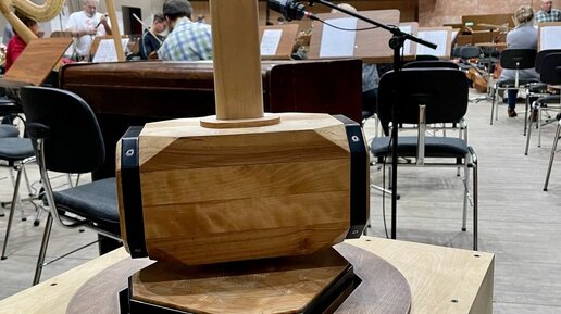 В омской филармонии появился необычный музыкальный инструмент в виде огромного молота