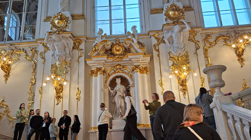 Дорогие мои друзья! Как я вам уже рассказывала, эти новогодние праздники мы провели в Санкт-Петербурге. Я, конечно, заранее планировала нашу поездку, так что бы каждый день был полон впечатлений. Я заранее купила билеты на сайте музея еще в Москве. Электронные билеты к определённому времени — это просто спасение. Никаких очередей в кассу сразу же в гардероб, а оттуда в «святая святых» — залы музея. И вот мы заходим в залы Эрмитажа через Иорданскую лестницу... Это что-то невероятное, белоснежный мрамор, золочёная лепнина, хрустальные люстры размером с небольшую комнату...