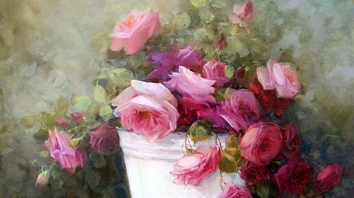 Любите ли вы розы, дорогие читатели? Да? Ну, тогда вас ждет удивительная радость – встреча с прекрасными розами, написанными современным итальянским художником. Свежими и пышными, только что собранными в самом прекрасном саду, какой только возможно себе вообразить. Вот бы прогуляться неспешно по его дорожкам, прикасаясь к цветам, вдыхая их аромат! И слушая пение птиц. В этом розовом саду обязательно поют соловьи! А пока за окном у нас зима, давайте полюбуемся розовым садом, который написал для нас Массон Бенуа...