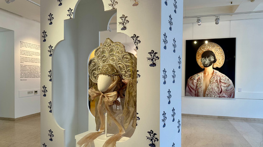 Самая страшная, на мой взгляд, работа художницы называется, как ни странно, «Загадочная русская душа» (см. фото ниже). На ней — хрупкая женская фигура, наполовину погружённая в какую-то тёмную жидкость болотного цвета. Лицо у неё затянуто красным чулком, вместо носа и рта — жуткий непонятный провал, а на месте сердца — окровавленный кусок мяса. Однако, при этом она богато украшена: звёздами, жемчугами, кораллами… Экспозиция, открывшаяся в московской галерее Heritage, называется «Игра без слов. Художественные миры Юлдус Бахтиозиной»...
