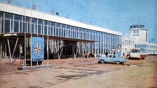 Аэропорт Победилово города Кирова открылся в 1969 году Аэропорт вплоть до нулевых годов сохранял свой аутентичный облик, что можно увидеть на цветных фотографиях интерьеров. Прибывающих со стороны аэрополя встречала мозаика художника Ильяса Юмагулова «Вятская земля» (в народе — «Кировчанка»)...