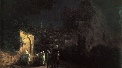 , (1817–1900). "Лунная ночь. У родника", 1877 Дерево, масло. 22 x 27 см Местонахождение неизвестно. Похищена из Национальной картинной галереи Армении в 1984 г. На данный картине мы видим фонтан Биюк-Чешме в Гурзуфе. До наших дней фонтан не сохранился. Судя по очерку Бертье-Делагарда: на фонтане была надпись, с разными благочестивыми изречениями и именами его устроителей...