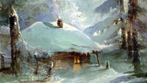 Эта картина изображает прекрасный зимний пейзаж с избушкой, стоящей в глухой чаще. Полотно словно переносит зрителя в морозную сказку, где пушистый снег окутал ветки огромных вековых елей и замёл дорожку к маленькому лесному домику. Саврасов очень любил писать зимние пейзажи, создавая их в романтическом стиле. Глядя на картину «Хижина в зимнем лесу», невольно вспоминаешь уральские сказки Бажова, особенно «Серебряное копытце». Кажется, что вот-вот на крыше избушки появится волшебный олень, и будет выбивать своей ножкой драгоценные камни...