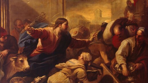 Наиболее подробно этот эпизод описывает апостол Иоанн: Иисус пришел в Иерусалим и нашел, что в храме продавали волов, овец и голубей, и сидели меновщики денег. И, сделав бич из веревок, выгнал из храма всех, также и овец и волов; и деньги у меновщиков рассыпал, а столы их опрокинул. И сказал продающим голубей: возьмите это отсюда и дóма Отца Моего не делайте домом торговли (Ин 2:13–16). Сразу стоит отметить, что речь идет не о храме в привычном для нас понимании. Иерусалимский храм был, по сути, городом в городе — со множеством построек и внутренними дворами...