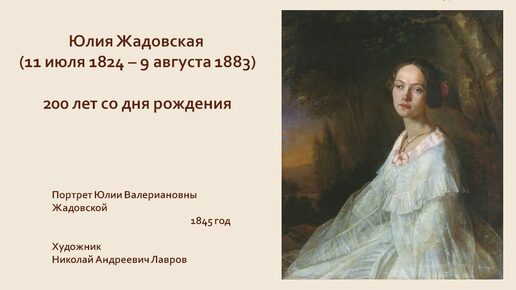 Дорогие друзья! В юбилейном для поэтессы Юлии Жадовской году – 200-летия со дня её рождения – я подготовила на канале целую подборку статей и роликов о жизни и творчестве этой необычайно сильной духом, талантливой женщины ХIХ века. Даю ссылку на подборку целиком, а в ней можно выбрать то, что покажется интересным: https://dzen.ru/suite/2d23d8fe-986a-4523-b8de-1cb67db7e5d3 Мне хотелось подробнее осветить некоторые малоизвестные факты из жизни поэтессы, и потому что их мало вообще, и потому что в них имеются некоторые неточности...