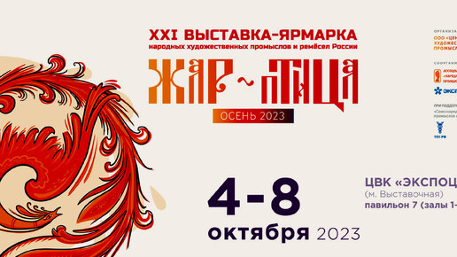 С 4 по 8 октября 2023 года в павильоне № 7 ЦВК «Экспоцентр» (Москва, Краснопресненская наб., д. 14) проводится – ХХI Выставка-ярмарка народных художественных промыслов «ЖАР-ПТИЦА. Осень-2023». Выставка-ярмарка «ЖАР-ПТИЦА» является ежегодным местом встречи мастеров народных художественных промыслов и ремесленников, работающих в области народного искусства, постоянных покупателей - москвичей и гостей столицы, а также представителей торговли, гостиничного и туристического бизнеса. В осенней Выставке...