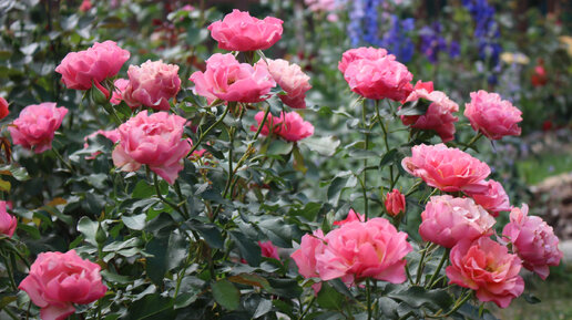 Всем привет!!! Хочу представить Вашему вниманию ещё одну первогодку в саду - розу Жан Кокто. Эта прекрасная флорибунда никогда Вас не подведёт, очень стойкая, рабочая, отличается пышным цветением по всему кусту. Роза средней высоты 80-90 см, у меня посажена на переднем плане. Роза - хамелеон, цвет меняется от розового до абрикосового, летом лепестки слегка выгорают на солнце до светло-розового. Цветки полумахровые, чашевидные или плоские, с волнистыми лепестками. Роза очень красиво смотрится с дельфиниумами на заднем плане...