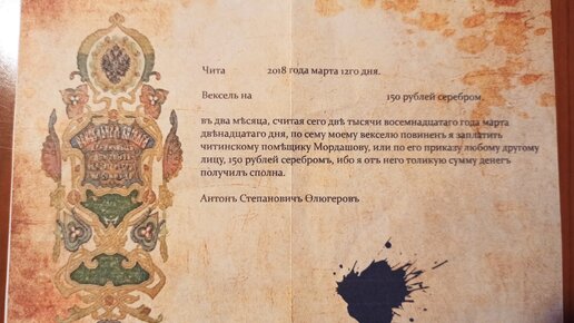 В 2018-м ставили в забайкальском драматическом старинный русский водевиль «Женитьба гусара» - спектакль чрезвычайно любопытный с точки зрения литературной части театра) Я тогда вспомнила для программки правила орфографии дореволюционного русского языка – потому как разница между фертом и фитой в этом спектакле была ключевой (это отразилось в программке). А кроме того, я тогда заморочилась и с азартом погрузилась в информацию о векселях: правила их составления, виды и особенности. Что получилось – на фото...