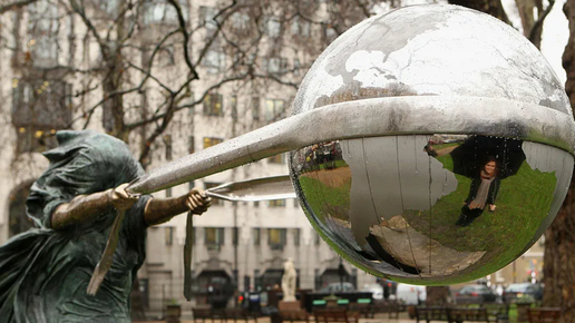 Женщина держит огромный шар, который вот – вот вылетит из ее узды: мощный смысл, не менее мощной статуи. Что хотел донести автор