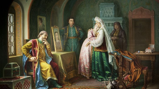 Картины - загляденье. Глядя на них, пожалуй, не усомнишься, что это - три разных автора. Условная Испания, театральная "древняя Русь", реальная Малороссия... А вот и ещё одна ипостась таинственного художника: роспись Вознесенского собора в Касимове. Но почему художник "таинственный", если имя его известно? Это Грибков Сергей Иванович. И даты жизни знаем: 1822 - 1893, и несколько его картин видели в Третьяковской галерее... А подробности жизни? А хотя бы фотография? Столь плодовитый автор не оставил...