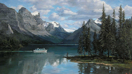 Горное озеро Малайн, Канада. Живопись Алексея Зотова.
