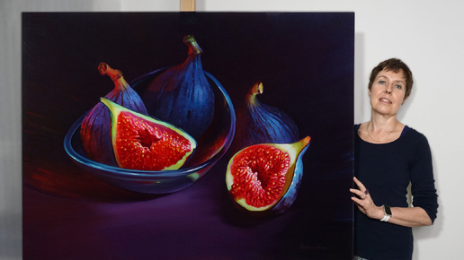 Фиги или инжир маслом на холсте: репортаж из мастерской художника, пишу фрагмент большого натюрморта.
