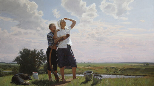 Жаворонок. Перед нами новая картина Андрея Геннадьевича Подшивалова «Жаворонок». В этой работе художник написал счастье. Настоящее, полноценное счастье, без всяких но. В центре картины - мать и сын подросток. Сын оперся на плечо матери. Мать, восхищенная песней жаворонка, остановилась и слушает. На ее лице читается восторг и радость. Сын тоже внимательно смотрит на небо. Он учиться слушать и любить пение жаворонка. В этой картине художник удивительно точно передает духовную связь сына, матери и природы вокруг...
