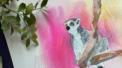 Лемур рыжий вари акварелью