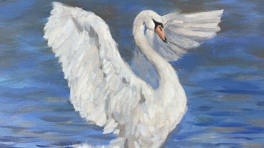 Рисуем белого лебедя|Лебедь масляными красками