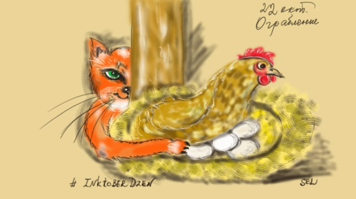 Но курица на яйцах так и не проснулась. Ей без разницы, кот или лиса стащила у неё цыплят. Дамы и господа, у нас творческая минутка! Рисование тематических рисунков — задачка для терпеливых. Особенно, если заданные темы каждый понимает по своему. Ну что же, продолжаю давать пояснения рисунков, к темам заданным на дни с 21 по 25 октября. И сразу скажу о том, что мне больше всего не понравилось в этой активности. Не было обратной связи от читателей статей и постов, а также от зрителей, смотревших видео...