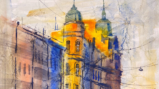 Акварельная живопись на мятой бумаге.