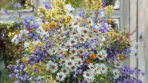 Почему мы так любим полевые цветы? Ромашки, васильки, Иван-чай, жарки, колокольчики? Все это многоцветье, словно ковром, укрывающее наши поляны. Все это многоцветье, растущее у обочин сельских дорог? Потому что срабатывает признак своего: эти все поля в цветах – они наши, родные, русские. Мы среди них выросли. Полевые цветы – украшение, созданное Богом, для нашей, родной, земли. Недавно увидела натюрморты белорусской художницы Татьяны Черных и поняла, что обязательно покажу их вам, дорогие читатели...
