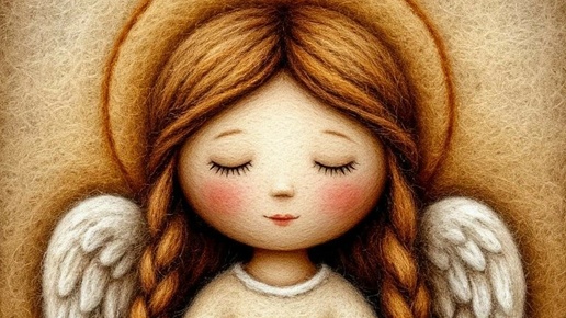Ангел. Шерстяная картина. Стиль примитивный промт
