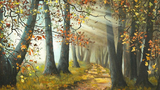 Рисуем речку в лесу и солнечные лучи. Летний Пейзаж. Мастер-класс по Живописи акрилом