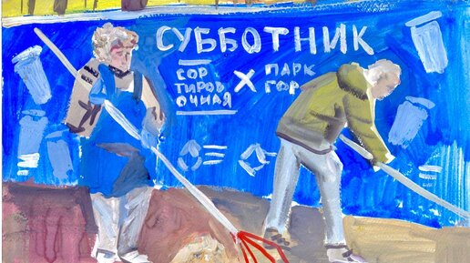 🍃Ещё один факт про субботник от «Сортировочной»: восемь скетчей о наших эковыходных создал художник Антон Жмурко