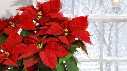 Чудесный зимний цветок: звездочка-пуансеттия в живописи