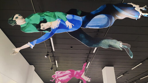 Выставку известного художника Марка Шагала я посетил 26 ноября 2023 года. Она проходит в художественной галерее "Bashmakov Gallery" по адресу Квартал «Ленполиграфмаш», Проспект Медиков, 3, лит. А. Сразу напишу - выставка литографий знаменитого художника мне очень понравилась! Но, его искусство своеобразно, поэтому не буду навязывать свое мнение, каждый сможет его творчество оценить для себя. При входе нас встречает вот такая интересная композиция: художник и его жена и муза Бэлла парит...