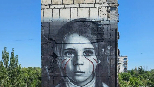 Итальянский художник Йорита Черулло, известный своим творческим псевдонимом Jorit, создал уникальный мурал в городе Мариуполе. В этом произведении искусства он изобразил девочку по имени Настя, а на заднем плане запечатлел падающие бомбы, символизирующие последствия конфликта с участием стран НАТО. Эта работа стала ярким выражением поддержки и сочувствия художника к детям Донбасса. Мурал Йорита Черулло размещен на боковой стене 9-этажного здания, высота самой картины - почти 6 этажей. Картина напоминает...