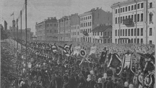 Художник "Всемирной иллюстрации" К. Брож изобразил похороны писателя Ивана Тургенева. Автор "Муму" и "Отцов и детей" умер в пригороде Парижа Буживале 22 августа (3 сентября) 1883 года. Его тело после траурных мероприятий в Париже было доставлено в Санкт-Петербург почти через месяц после смерти. На всех приграничных станциях станциях следования поезда по территории России служили панихиды по писателю. Прощание с писателем происходило в течение пяти дней, наконец, 27 сентября Иван Тургенев был похоронен...