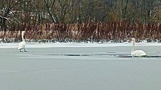 В Петровске пара лебедей не смогла улететь на юг и застряла в ледяном озере