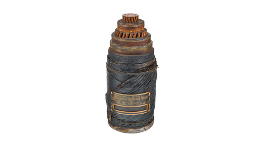 Перед нами отрезок кабеля СБ, что означает «силовой бронированный». Предмет предназначен для выставок. В верхней части экспоната сделаны послойные срезы, что позволяет ознакомиться с устройством кабеля, который выпускали на начальном этапе отечественного производства. Концентрические силовые кабели получили широкое распространение в конце XIX — начале XX века. Данный образец представляет собой цилиндрический отрезок силового двухжильного концентрического бронированного кабеля, размещённый на свинцовом основании...