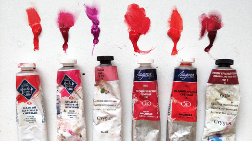 Немного о свойствах из моего опыта: ▪️1. Кадмий красный светлый, (Мастер класс) - незаменимый! Самый лучший красный из всех теплых красных.  Укрывистый, плотный.  Сохраняет насыщенность при смешении с темными красками и дает очень красивые и яркие оттенки с белым, оранжевым и розовым.  ☑️️️️️Пользуюсь постоянно. ▪️2. Краплак розовый прочный (Мастер класс). - яркий, плотный, укрывистый. Получается красивая гамма оттенков, как в светлой палитре, так и в темной.  (Знаю художника, который рекомендует пользоваться только этой краской)...