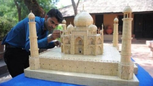 Индийский художник Шейх Салимбай создал модель Тадж Махала, практически идентичную с настоящим шедевром мировой архитектуры. На его создание потребовался год и 19 дней. Деревянная модель была создана целиком из спичек, которых насчитывается порядка 75 тысяч...