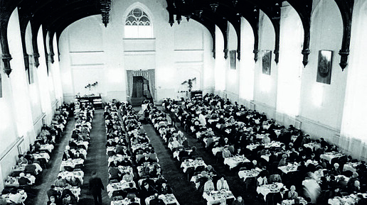 Никто не собирается оспаривать первенство (в этом) колледжа Крайст-Чёрч. Однако надо признаться, что столовка колледжа тесноватая, а вот столовка санатория "Петродворец" - самое то!) Как колледж, так и санаторий не одно здание, а комплекс. И еще санаторий Петродворец он был при "злых советах", а ранее - Готические конюшни Бенуа. Конный двор появился на этом месте за столетие до того, как Бенуа возвёл императорские конюшни. Строительство новых каменных зданий началось в 1847 году, а старые деревянные снесли...
