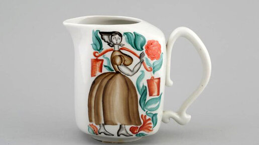 Результатом творческих поисков стали необычные сервизы, на которые мы сегодня и посмотрим. Борис Ефимович окончил Строгановку в 1967 года, а начал свой творческий путь в 1969 году. И одна из его первых работ называется «Русский городок». Форма молочника мне показалось особенно интересной. Продолжая народную тему - сервиз «Русский сувенир». Ещё одна ранняя работа - сервиз «Павлины». Ручка у чашечки крайне необычная. Представляю, как легко можно было разбить её...